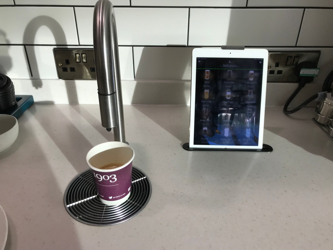 OK, I know there is a coffee machine somewhere under the counter, but I miss the aroma, noise, and sight of good coffee being brewed! There’s a social element about coffee, of course in the drinking, but also in the making, that a touch-screen interaction just doesn’t impart.