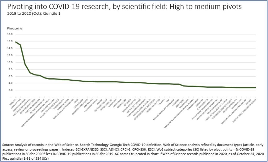Shapira, P. (2020). “Scientific publications and COVID-19 “research pivots” during the pandemic: An initial bibliometric analysis,” bioRxiv 2020.12.06.413682; doi: https://doi.org/10.1101/2020.12.06.413682